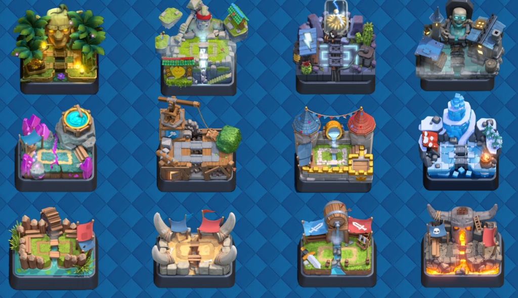 Clash Royale no solo destaca por sus cartas y estrategia, sino también por su variedad de mapas visuales, que dan vida a cada batalla. Aunque el campo de juego siempre mantiene el mismo formato de tres torres, Supercell ha creado diversos diseños que cambian la ambientación del duelo, haciendo cada partida más divertida y única.